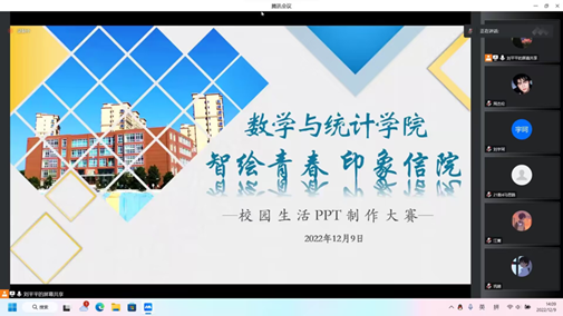为丰富学生的校园生活,提高学生PPT制作水平,老太阳集团8722于12月9日中午在线上开展主题为“智绘青春印象信院”校园生活PPT制作大赛,大赛由辅导员江燕主持,全体辅导员担任评委。