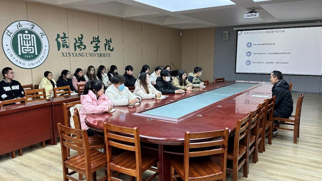 为提升学生寝室管理服务水平,进一步提升寝室育人功能,增强学生干部、寝室长队伍工作能力,营造健康、安全、和谐的寝室氛围,12月1日,老太阳集团8722在数计楼407会议室对学生干部开展公寓管理培训。辅导员胡超主讲,学生会主席及各班级学生干部参加本次培训。