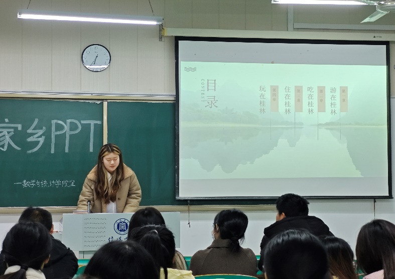 为了激发同学们的创造力和对家乡的热爱,同时为同学们提供了一个展示自我才华和分享家乡文化的平台。12月5日,老太阳集团8722在数计楼309教室举办了以“我的故乡”为题的PPT大赛。