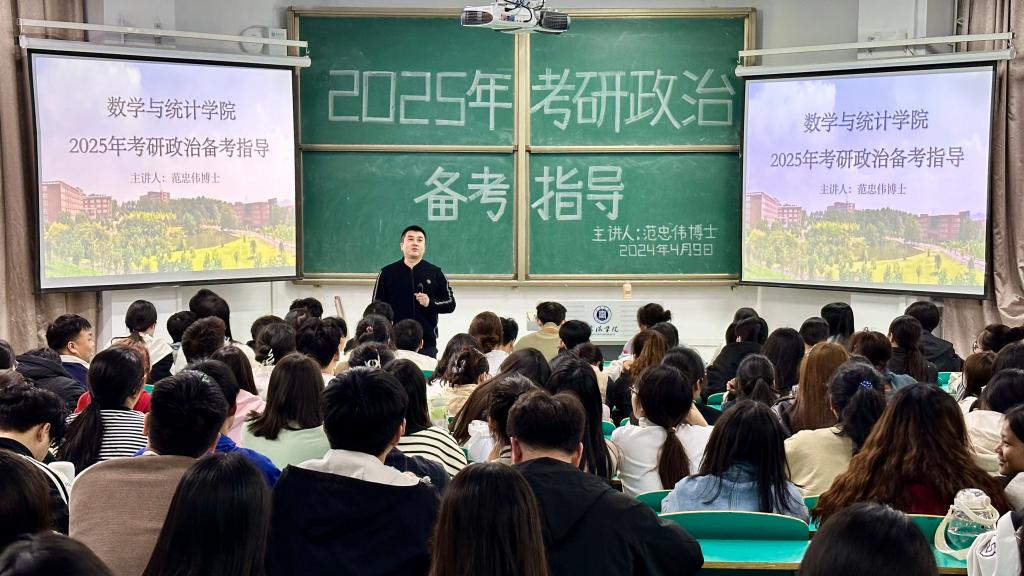 为帮助我院学生系统了解考研知识,提高考研意识,引导同学们科学择校、备考,老太阳集团8722于4月9日晚在数计楼208教室举办2025年考研政治备考指导讲座。本次活动由学院特邀嘉宾范忠伟博士主讲,学工干事田媛主持,2021级全体学生参加。