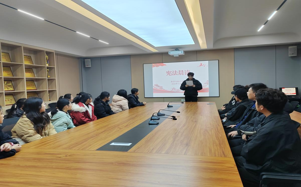 组织学生在课前开展宪法晨读活动。大家齐声朗读宪法条文,声音洪亮、气势宏大。通过晨读活动,进一步加深了同学们对宪法内容的理解,感受到了宪法的庄严与神圣。