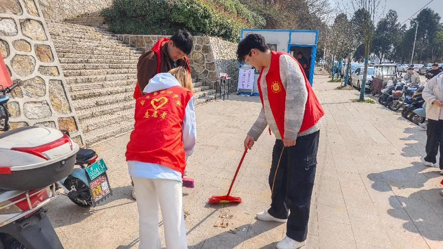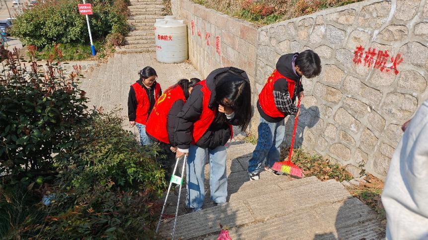 活动当天,志愿者们携带清扫工具登上贤山。大家分工明确,有的用扫帚清扫路面垃圾,有的拿夹子清理草丛杂物,还有的负责搬运垃圾。过程中,志愿者们不怕脏、不怕累,干劲十足。经过数小时努力,贤山的道路、休息区焕然一新。