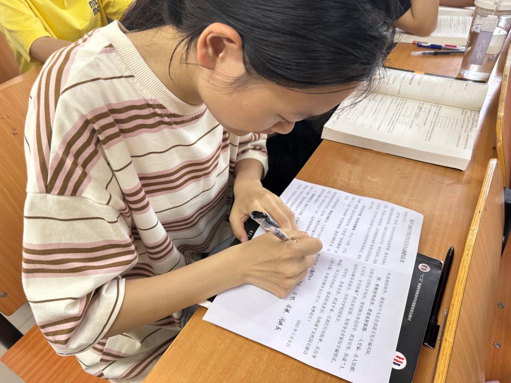 在签署反诈倡议书前,各班负责人先领学反诈倡议书内容。倡议书重点提醒学生警惕“网络刷单”“冒充公检法”“虚假购物”等常见诈骗手段,着重强调网络刷单本身就是违法行为。同时,要求学生妥善保管身份证号、银行卡号等个人敏感信息,对网络问卷填写、扫码领礼品等行为保持高度警惕。在面对“中奖通知”“退款链接”等可疑信息时,务必通过官方渠道仔细核实。