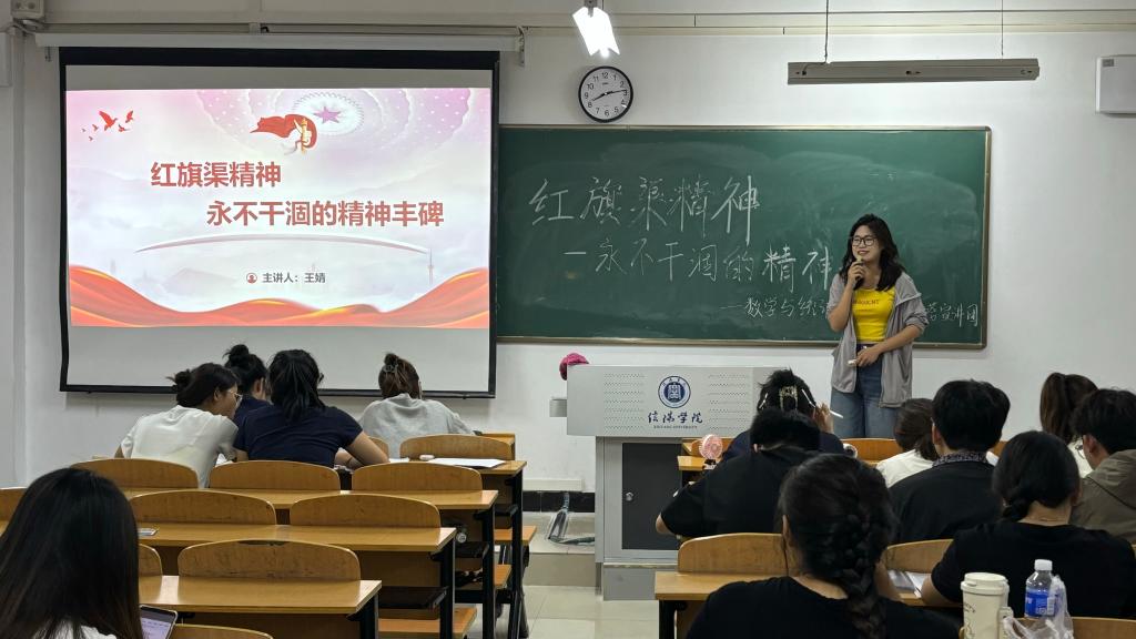 宣讲员王婧围绕“红旗渠精神——永不干涸的精神”,通过林县人民开凿“人工天河”的壮举,阐释“自力更生、艰苦创业”的精神内涵,以“铁姑娘队”案例激励学子用奋斗攻克难关。