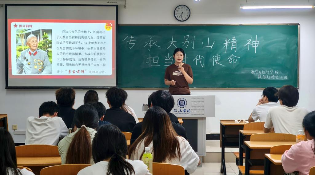 宣讲员张心雨以“传承大别山精神 担当时代使命”为题,从鄂豫皖革命根据地历史出发,解析“坚守信念、团结一心”的精神内核,用红军战士的故事号召青年以坚韧投身实践。