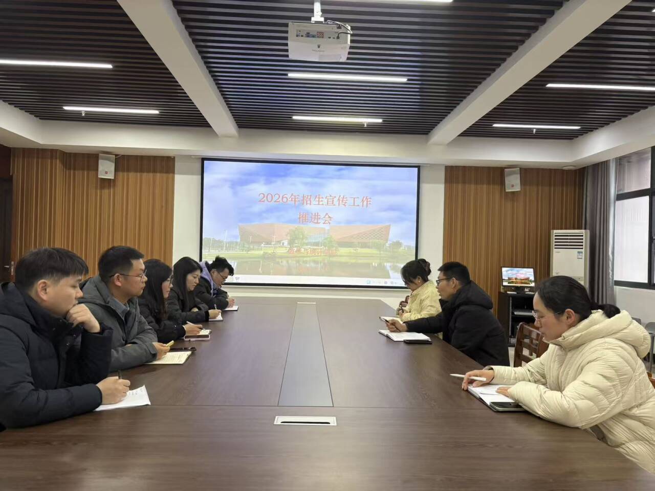 为深入贯彻学校招生工作部署,高质量推进2026年招生宣传工作,3月16日下午,老太阳集团8722召开2026年招生宣传工作推进会。学院党总支书记郭二军、党总支副书记田媛,行政干事闫珍珠及学院招生宣传团队教师参会,会议由田媛主持。