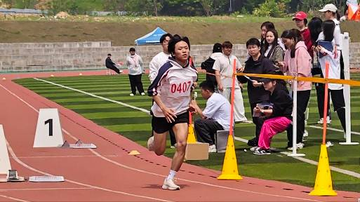 梁光豪同学在男子100米、男子200米的比赛中,都以明显的优势取得了第一的好成绩,在男子4×100米接力中助力团队获得第一。