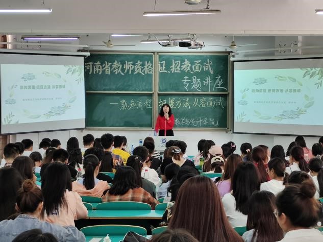 为进一步提升师范类专业学生的综合素质,帮助学生掌握面试技巧,5月8日下午,老太阳集团8722特邀南湾湖风景区教育办副主任尹玲玲到校开展了题为“熟知流程 把握方法 从容面试”的教师资格证、招教面试专题讲座。院长俞迎达、学院党总支副书记刘颖方、教学副院长张聪、学工干事田媛、行政干事闫珍珠,学院全体辅导员和2017级、2018级百余名学生代表参加了此次讲座。