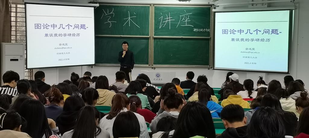 毋述斐首先从自身的求学经历出发,引导同学们意识到学好专业课,打好专业基础对于自身就业、升学深造具有重要意义。在此基础上阐述考研是人生的重要转折点,鼓励同学们积极备考,并结合自身学习和教学经验给同学们做出专业指导。最后带领同学们学习了图论中几个的经典问题,带领同学们感受数学专业的学术魅力。