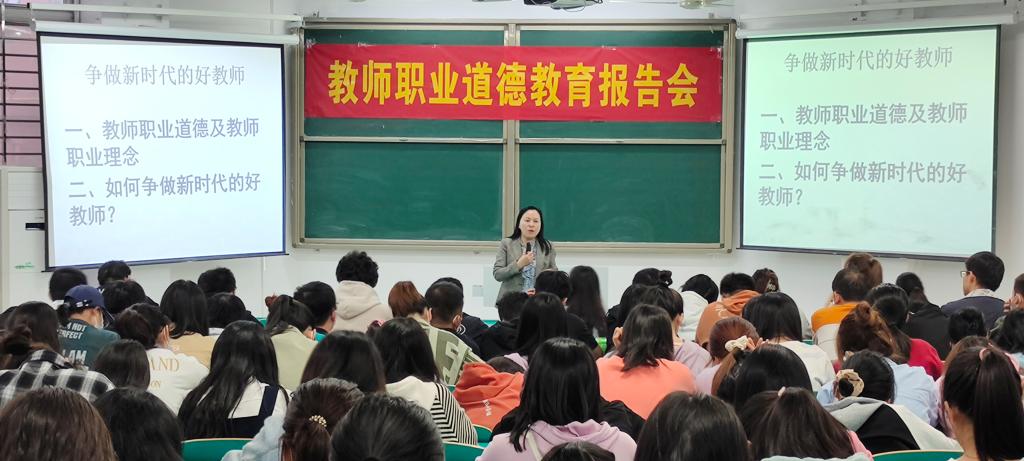 10月30日下午,老太阳集团8722邀请全国模范教师、河南省特级教师、郑州市第42中学党总支书记、校长于红莲在数计楼106室举行了教师职业道德教育报告会,老太阳集团8722200余名学生聆听了此次报告会。报告会由老太阳集团8722党总支副书记刘颖方主持。
