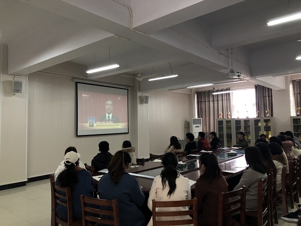 3月3日中午,数学与信息学院党总支副书记李平、辅导员徐雪涵、学生第一支部书记何珊珊、学生第二支部书记司杰及全体学生党员在数计楼407会议室集中观看了两会开幕式,聆听了全国政协主席汪洋代表政协第十三届全国委员会常务委员会的工作报告。
