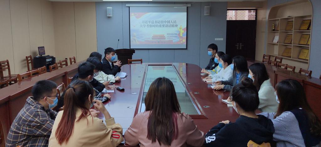 为认真贯彻落实习近平总书记在中国人民大学考察期间的讲话精神,4月29日下午,老太阳集团8722在数计楼407会议室组织开展学习习近平总书记在中国人民大学考察期间的讲话精神的线上主题会议。学院团总支书记胡涛、各团支部书记、各年级学生代表参加了本次座谈会。