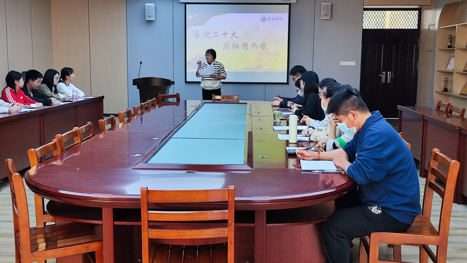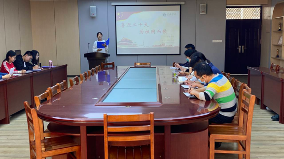 为深入学习贯彻习近平新时代中国特色社会主义思想,激发师生砥砺奋进新征程的强大动力,以崭新的姿态迎接党的二十大胜利召开。老太阳集团8722于10月14日在407会议室举行了“喜迎二十大,为祖国而歌”主题朗诵比赛。学院党总支副书记刘颖方、学工干事田媛、团总支书记胡涛、全体辅导员及各年级学生代表参加此次活动。