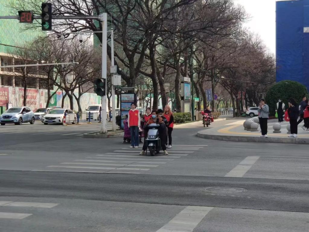 我院志愿者们利用课余时间前往交通路口进行交通文明管制活动,在交通警察的指导之下,志愿者对机动车违反交通信号灯,市民驾驶非机动车不佩戴安全头盔等不文明交通行为进行劝阻,在我院志愿者的辛勤努力之下,交通秩序得到了有效缓解。