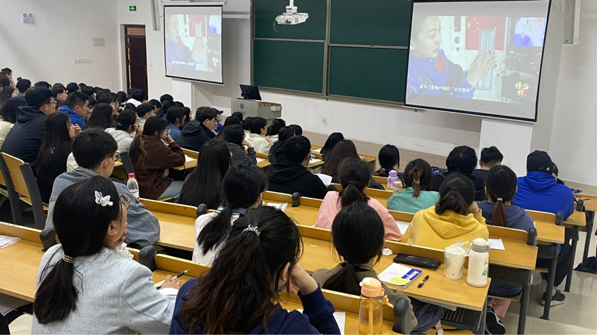 主讲人马克思主义学院王妍老师以弘扬北斗精神为主题进行讲解,重点对以爱国主义为核心的民族精神和以改革创新为核心的时代精神在航天领域的生动诠释进行讨论,其次主讲人张萍萍老师以“学习党的二十大精神,争做新时代好青年”为主题进行报告。提出当代青年应始终牢记党的二十大主题,高举中国特色社会主义伟大旗帜,全面贯彻习近平新时代中国特色社会主义思想,弘扬伟大建党精神,始终坚持中国共产党的领导,紧密团结在以习近平同志为核心的党中央周围。并提出对党员发展对象的殷切期望:在吃苦奋斗中成长成才、成就自我。