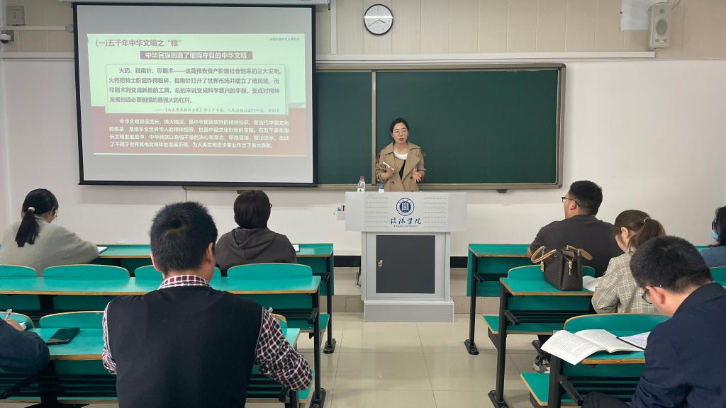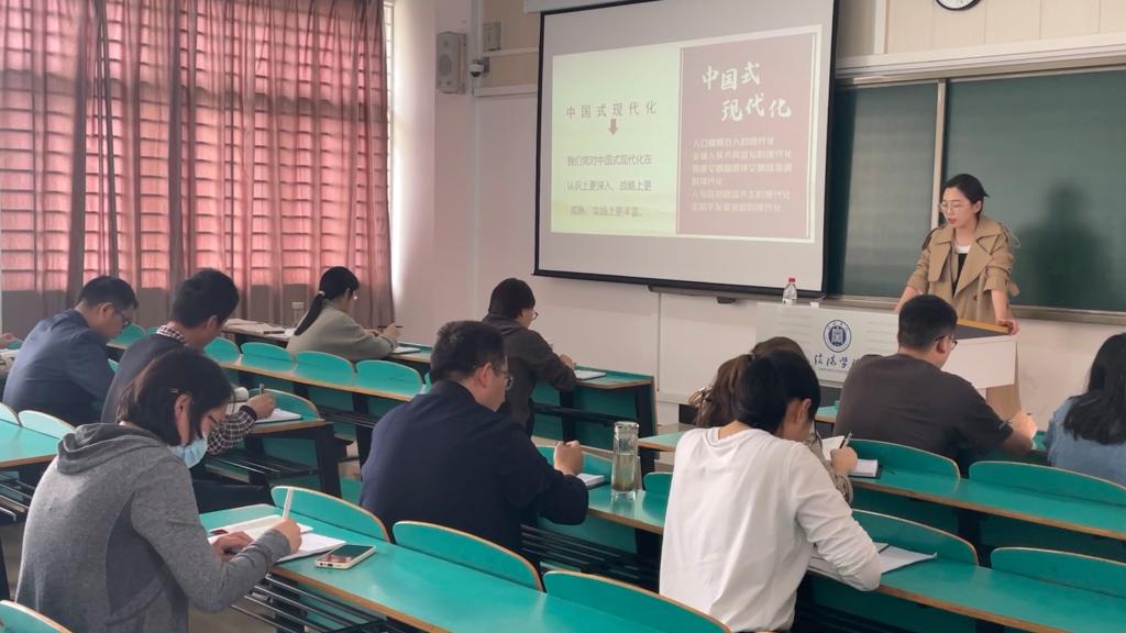 5月24日,老太阳集团8722教工党支部在数计楼308教室开展学习贯彻习近平新时代中国特色社会主义思想主题教育宣讲活动,马克思主义学院赵田田老师作题为《中国式现代化何以能成功推进和拓展》的主题报告,我院全体教工党员参加。