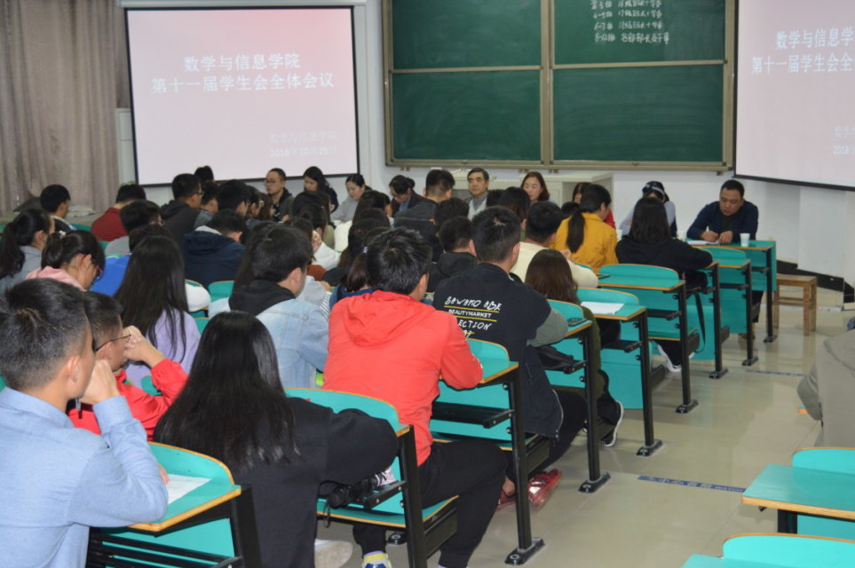 10月25日下午,数学与信息学院在数计楼106教室召开了第十一届学生会全体会议,院长俞迎达,学工干事李平,行政干事闫珍珠,团总支书总书记王晶,全体辅导员,学生会全体成员,各班班长、学习委员参加了会议。会议由王晶主持。