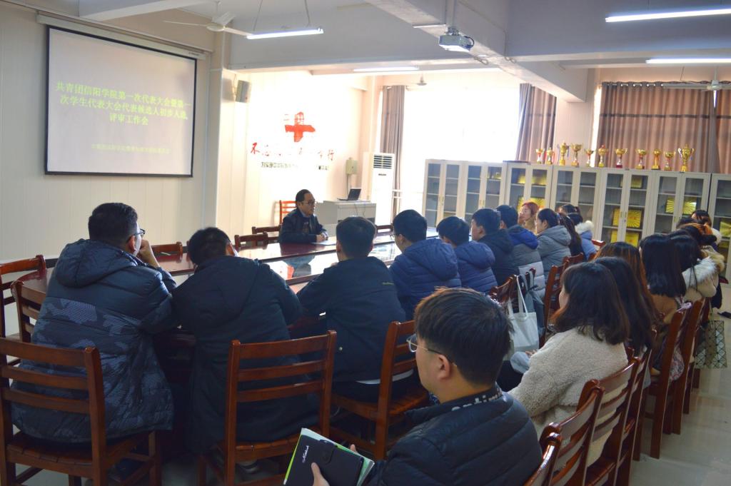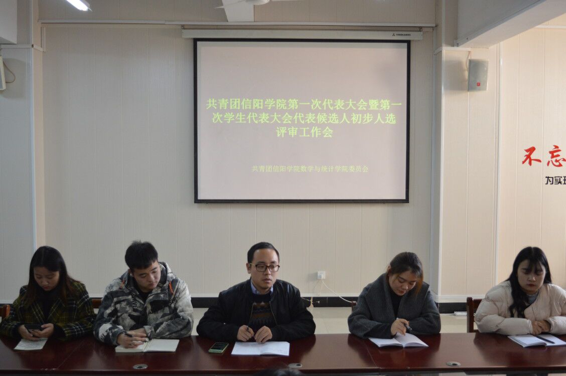 根据校团委《关于做好共青团信阳学院第一次代表大会暨第一次学生代表大会代表选举工作的通知》要求,老太阳集团8722团总支认真组织了共青团信阳学院第一次代表大会暨第一次学生代表大会代表候选人初步人选酝酿推荐工作。2019年12月4日中午,老太阳集团8722团总支在407会议室举行了代表候选人初步人选评审会。