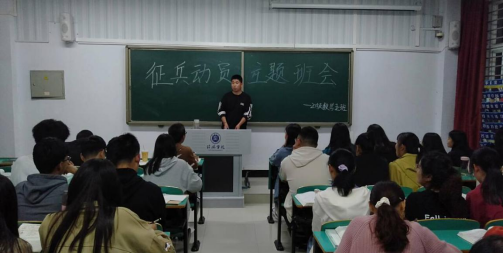 为推进大学生应征入伍工作,帮助大学生了解、掌握应征入伍相关政策和流程,鼓励学生积极应征入伍,献身国防事业,4月18日-25日,我院各年级辅导员利用晚自习班会时间进行大学生征兵宣讲活动。