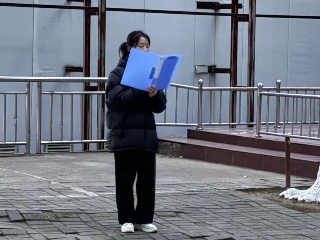 升旗完毕后,学院25数学本01李婉婷发表了国旗下讲话。她结合自身进入大学以来的学习生活体会,表达了对未来学业生涯的憧憬与决心,号召全体新生同学珍惜时光,夯实数学基础,勇于探索真理,将个人理想融入时代发展,在青春的赛道上奋力奔跑。