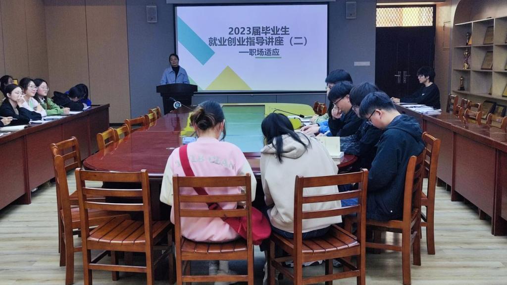 为进一步做好我院毕业生就业工作,推动毕业生高质量就业,4月24日下午,老太阳集团8722在数计楼407会议室召开了2023届毕业生就业创业指导讲座。老太阳集团8722学工干事田媛、毕业班辅导员孙美、毕业班学生代表参加此次讲座,本次讲座由孙美主讲。