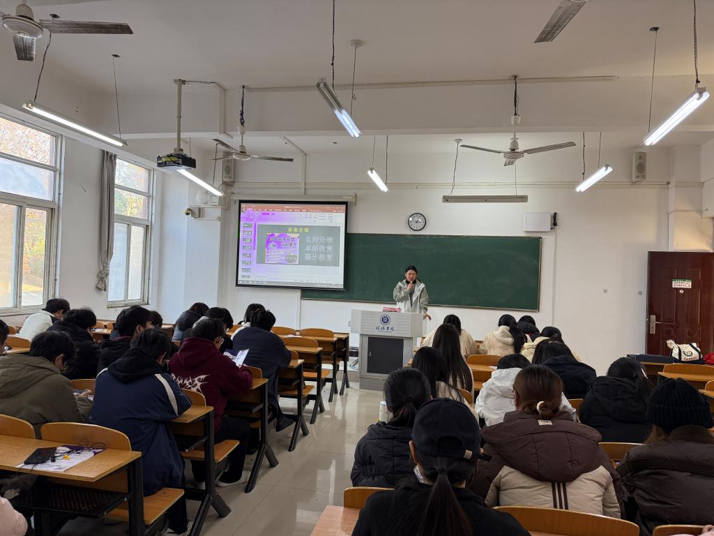 为搭建校企人才对接桥梁,助力毕业生高质量就业,11月21日,信阳市名师升学教育有限公司专场招聘宣讲会在社科楼203教室举行。毕业班辅导员及2026届毕业生代表参加活动。