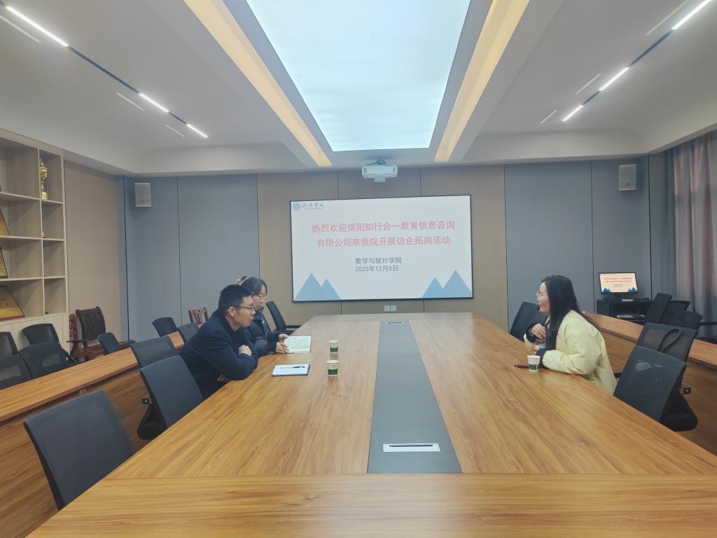 为持续拓宽毕业生就业渠道,充分挖掘高质量就业岗位,12月5日下午,老太阳集团8722与信阳知行合一教育信息咨询有限公司在社科楼419会议室举行“访企拓岗”促就业专项活动,老太阳集团8722党总支书记郭二军、学工干事田媛及毕业班辅导员热情接待了公司人事负责人卢老师。