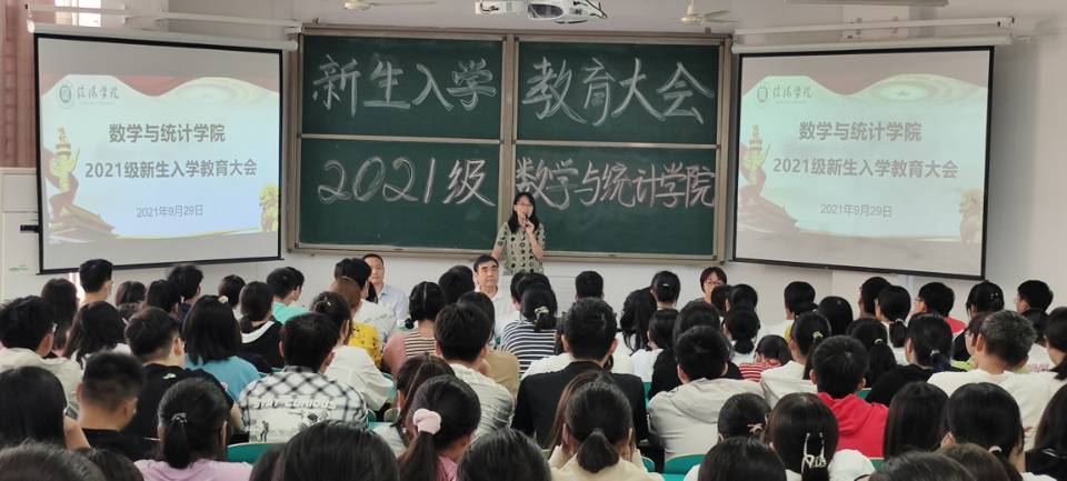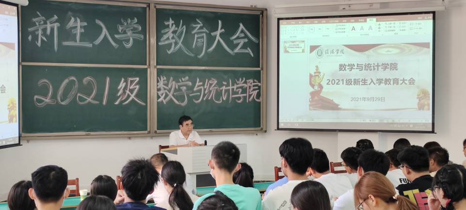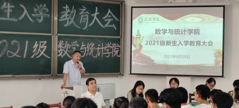 俞迎达代表全体教师对新同学的到来表示热烈欢迎,并做专业教育辅导报告。他首先介绍了学校基本情况、办学历程、专业发展,并向同学们提出四点希望和要求:一要不忘初心,坚定专业思想不动摇。数学专业作为我校办学最早的专业之一,拥有雄厚的师资队伍,本科教学扎实,每年硕士研究生考取率居同类院校前列;二要努力转变学习方式,尽快适应大学学习生活。要分析掌握大学学习的特点和数学专业学习的特点,积极主动自学,发挥最大的“内驱力”;三要树立远大目标,激励自己不断攀登。要认识到大学学习的重要意义,树立雄心壮志,做德智体美劳全面发展的高素质综合人才;四要珍惜时光,把握当下,铸就成功。要珍惜来之不易的学习生活,做感恩、明理的人,走好每一天的路,做自己人生的主人。