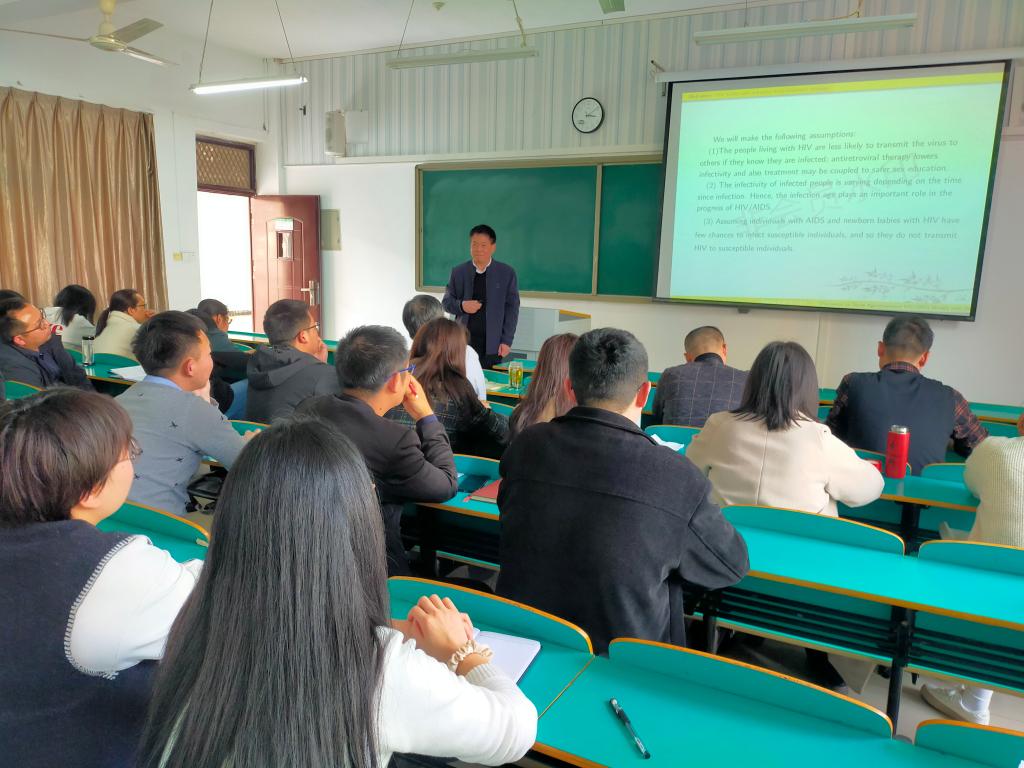 会议第一阶段,柳合龙教授作了题为《Discussion on class-age-structured HIV/AIDS models with drug-treatment strategies》的学术报告。他详细介绍了自己的专业背景和目前从事科研情况,欢迎与其科研方向相近或感兴趣的老师们交流学习,组建学术团队,形成优势互补,共同提升科研与社会服务能力。
